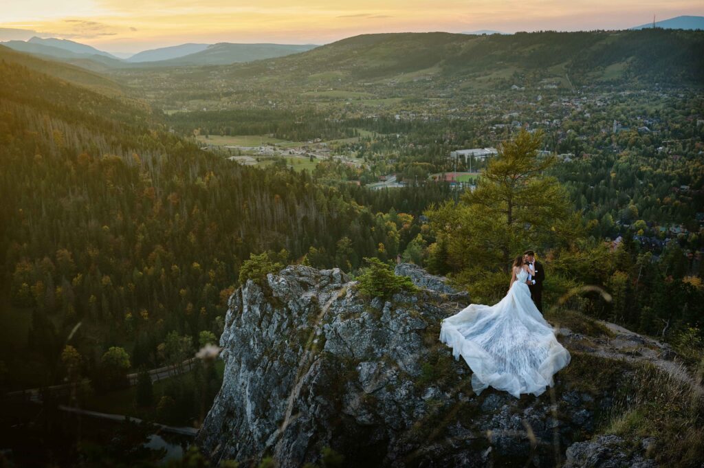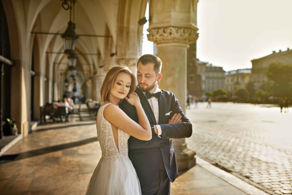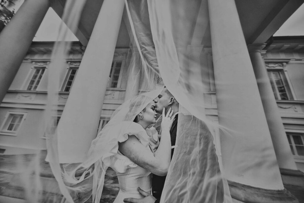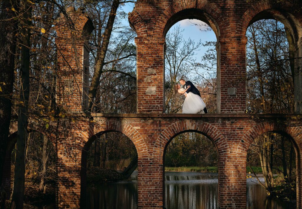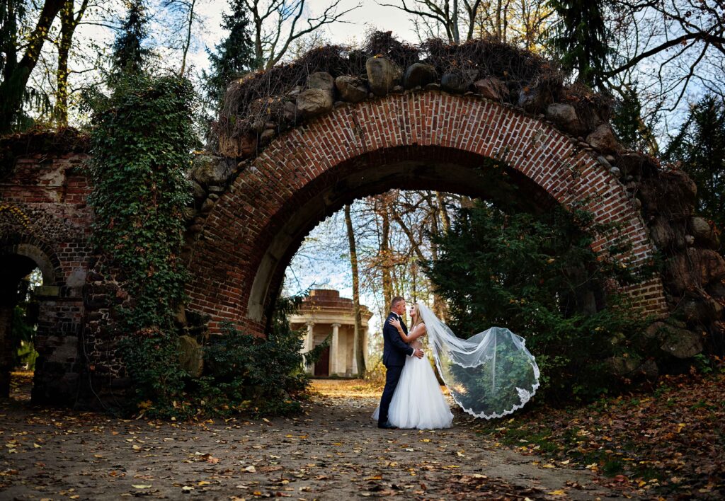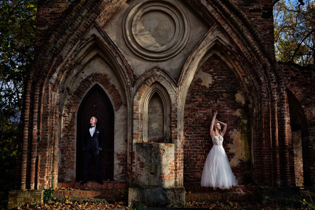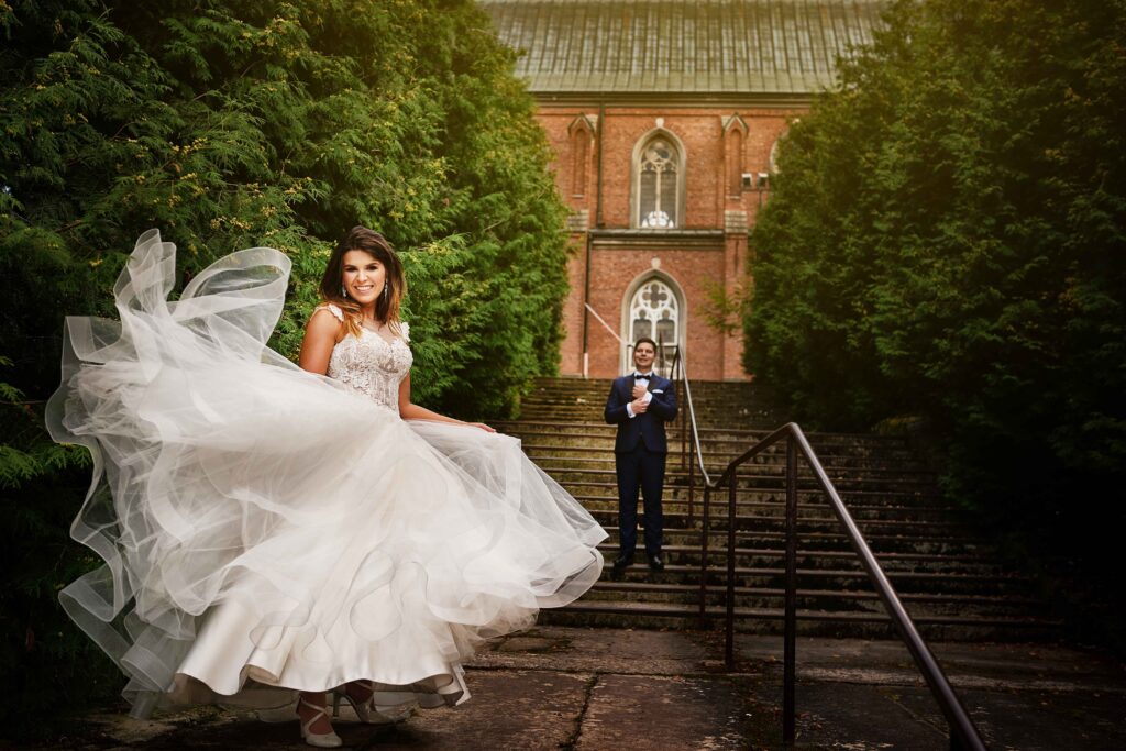 Plener w dniu ślubu – jeśli zależy Wam na krótkiej sesji, zaledwie 20-30 minut wystarczy na kilka pięknych ujęć w okolicy ceremonii.
