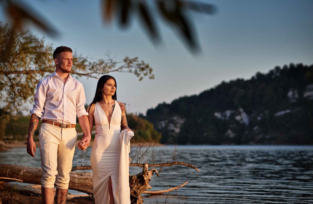Podczas ceremonii i wesela staram się być dyskretny, by uchwycić naturalne emocje. W plenerze natomiast nie ma presji, a Wy możecie czuć się swobodnie, bez pośpiechu. Każdy gest i spojrzenie mają ogromne znaczenie. Wybór lokalizacji jest kluczowy – może to być Wasze ulubione miejsce, a jeśli go nie macie, zapewniam, że magia pleneru sprawi, iż każda sceneria będzie wyjątkowa.